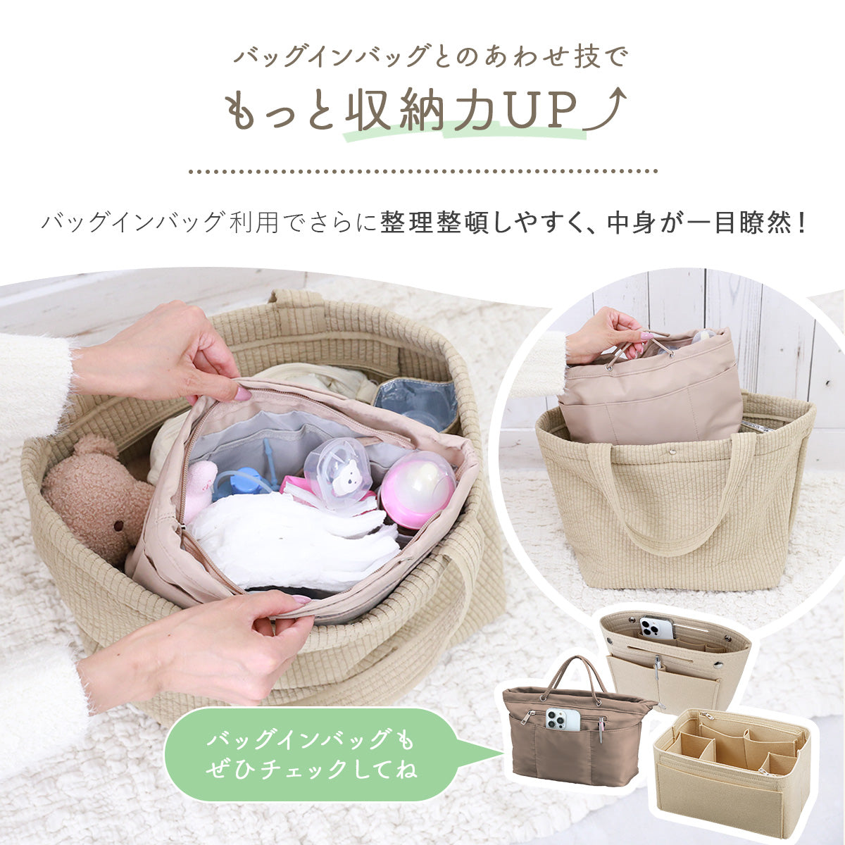 ママだけでなく、レディーストートとして普段使いや旅行にも最適です。